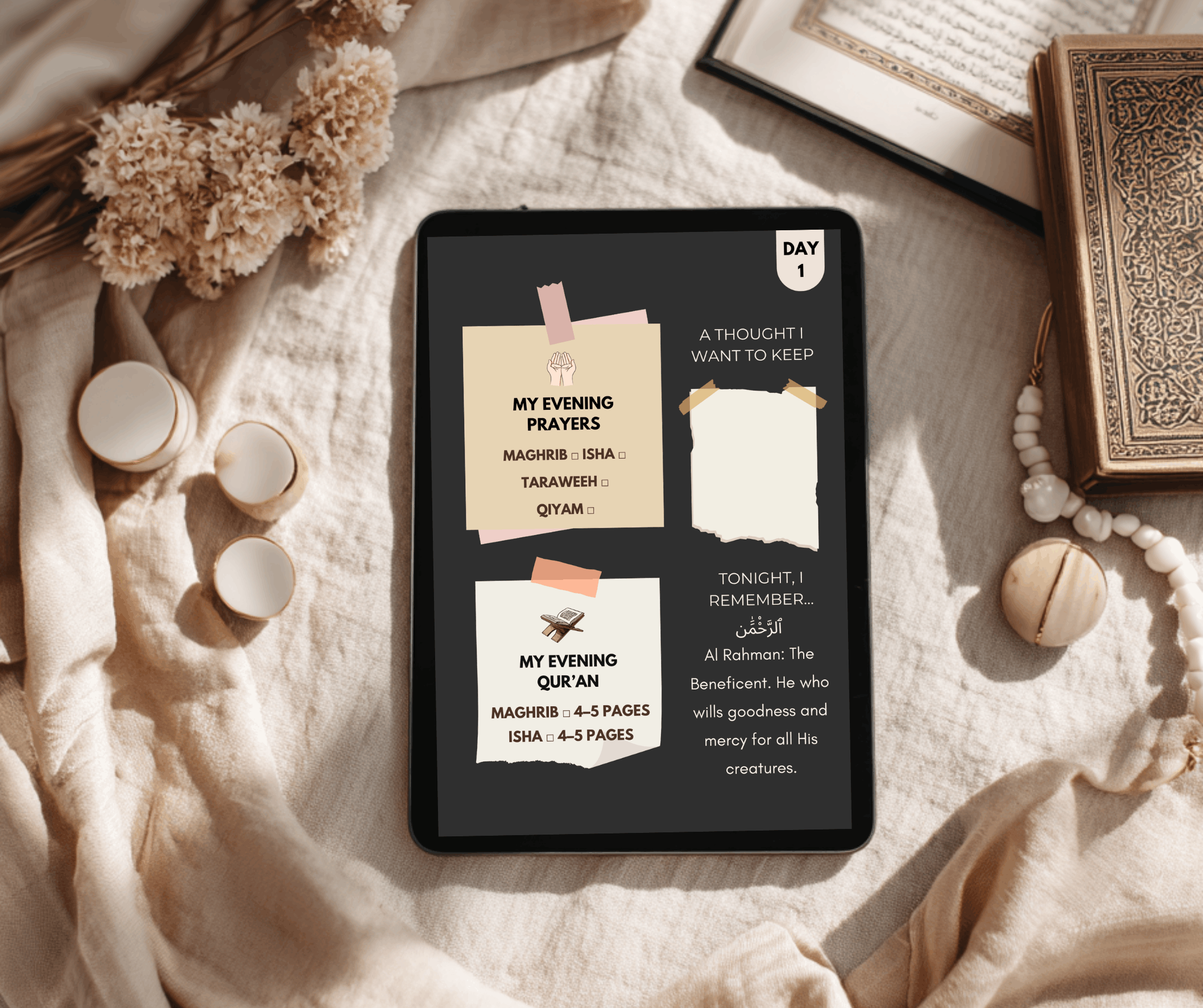 With duaa to lift you, structure to ground you, and space to write what your heart is carrying. It meets you where you are and walks with you through the month.